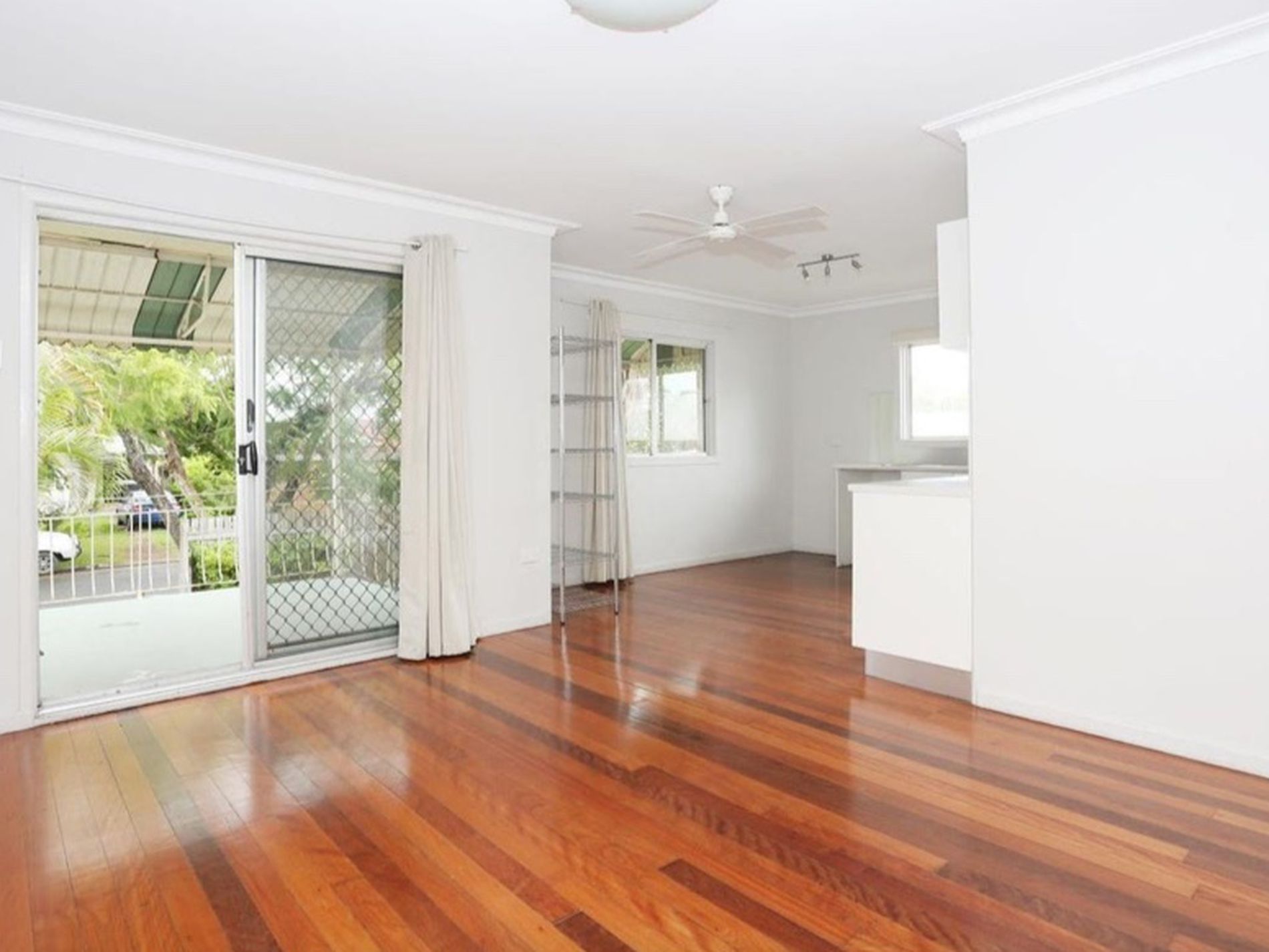 - Open plan lounge/dining with ceiling fan